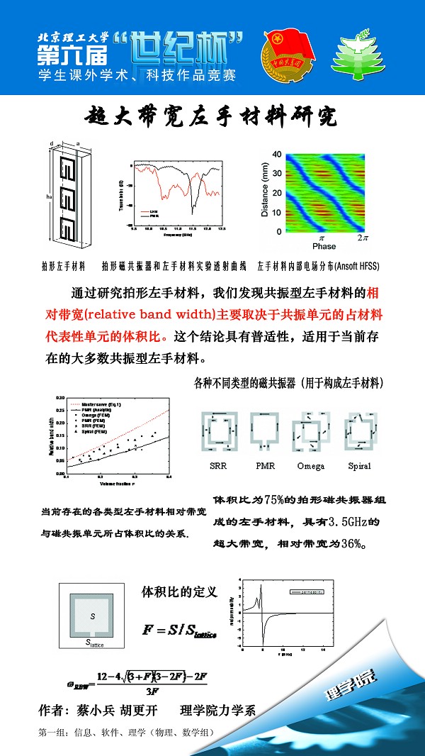超大带宽的左手材料研究 蔡小兵(博士) 理学院力学系 三等奖