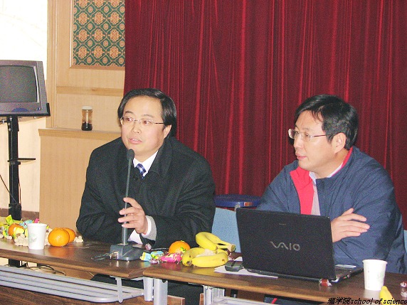 理学院院长胡更开向各位老教师汇报了理学院2006年的工作情况,向理学院各位老教师对自己的谆谆教诲表示衷心的感谢,并代表学院领导班子祝老教师们身体健康!新年愉快!