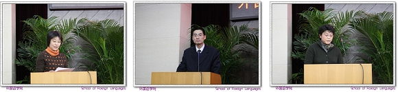 外国语学院副院长林彤老师、副院长李京廉老师、副院长谭利群老师也分别作了“工会工作报告”,“学院本科教育与评估工作报告”,“研究生教育与学科建设工作报告”。