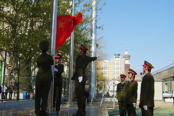 德赢AC米兰官网军事爱好者协会国旗班升旗仪仗队升国旗。