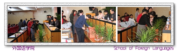 2007年1月24日,外国语学院首届教职工大会暨首届工会会员大会闭幕式在校图书馆一层报告厅举行。校工会常务副主席蔡本睿同志出席了闭幕式,外国语学院党委书记王文清同志,院长吴树敬同志,副院长林彤同志,德语系主任姜爱红同志,外国语言学及应用语言学学科带头人陈大明同志在主席台就坐。学院副书记、副院长吴文君同志,副院长李京廉同志,副院长谭利群同志及大会主席团成员在会场前排就坐,外国语学院全体教职工参加了闭幕式。