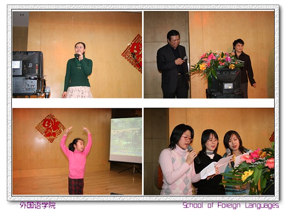 在联欢晚宴上,学院精心准备了很多精彩的节目、游戏。为感谢学校领导对外国语学院发展的支持,感谢学院的教职工这半年以来辛勤的工作,学院还准备了精美的礼品和奖品。