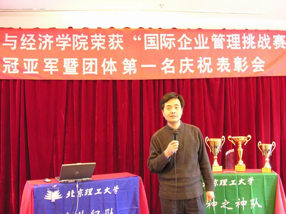 颁奖仪式后,焦文俊书记除了对管理与经济学院获得GMC大奖表示高兴和赞扬以外,还叮嘱我们要再接再厉,勇往直前;不要仅仅满足于GMC比赛取得的成就,还要从各个方面来扩大管理与经济学院的影响,提升管理与经济学院的教学质量与社会知名度,培养高素质的管理人才。