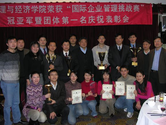 第27届国际企业管理挑战赛中国区比赛从2006年10月开始,2007年1月结束,历经初赛、复赛、半决赛、决赛四个阶段,从全国850支参赛队中赛出8强进入决赛。在2007年1月19日举行的 “国际企业管理挑战赛(GMC)”中国区总决赛中,我校进入决赛的四支代表队不负众望,继往开来,一举包揽中国区冠军、亚军、团体总分第一名、华北区冠军等诸多大奖。这也是我校代表队继去年夺得GMC比赛中国区冠军以后第二次荣摘桂冠。GMC队员们再次载誉而归,受到了学校、学院的热烈欢迎与奖励。