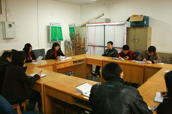 针对相关问题,根据学校今年学生工作的指导思想,郝老师对大家提出了几点要求:一是要统一思想,以“创建和谐社会”为出发点,以“三个代表”重要思想武装头脑,以“八荣八耻”为行为准则,以创建和谐校园为工作主线,配合相关部门落实“一提三优”工程;二是通过形势政策课等相关学生活动加强学生的思想教育工作,在现在的基础上将德育答辩做为一项长期工作深入到低年级中;三是认真学习中央“十六号文件”建立健全保持共产党员先进性的长效机制,加强自身修养,丰富理论知识;四是为创建高水平研究性大学,做好本科教学评估工作开展深入思考,根据学院特点提出方案;五是深入学生宿舍,了解学生生活,掌握学生第一手资料,将学生心理健康教育提到日常工作议程当中。