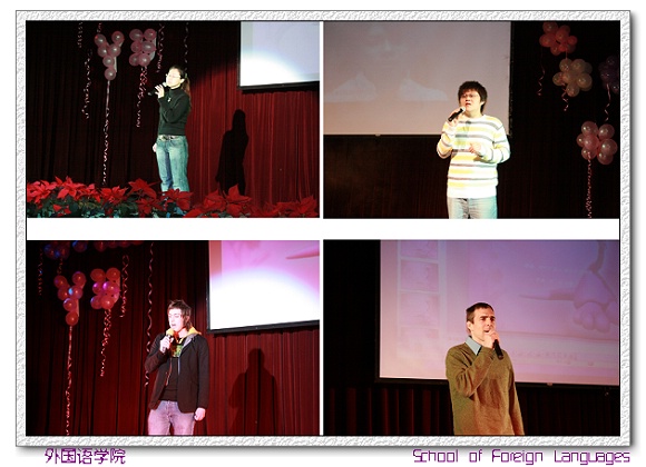 出席开幕式晚会的有德赢AC米兰官网副书记、副校长杨宾老师,学生工作处处长刘明奇老师,研究生工作部部长肖文英老师,校团委副书记衡靖老师等。外国语学院院长吴树敬老师,党委书记王文清老师等学院领导和各系部主任以及我校的外教及留学生也出席了开幕式晚会。