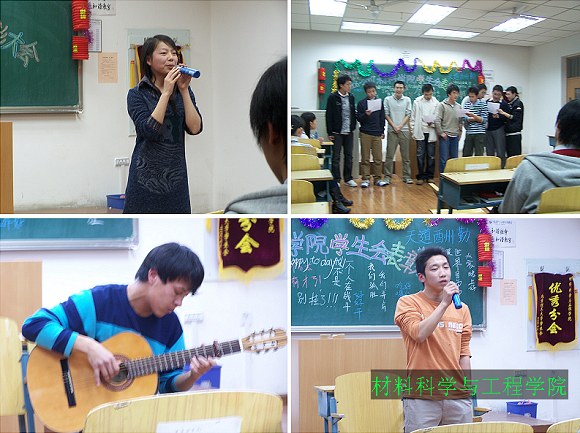 最后,多才多艺的才子才女们都表演了精心准备的节目。有的一展歌喉为大家倾情奉献一曲,有的尽显幽默一段小品逗得大家开怀一笑,有的深情款款配乐朗诵了几首诗歌,有的弹奏的娴熟的古典吉他曲赢得一片赞叹……场面精彩纷呈,充分展现了我们材料人的风采。