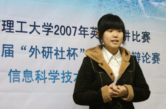 2007年4月11日晚7点,信息科学技术学院承办的全校英语演讲比赛院级选拔赛在4号楼233教室举行。本次比赛特别邀请了外国语学院大学英语部栗欣老师和张渊老师担当评委,分团委副书记高路老师主持并参加了此次比赛。