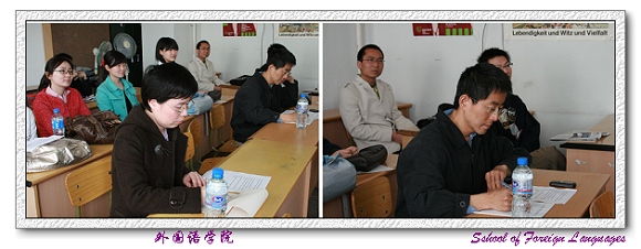2007年4月10日下午,在中心教学楼515和518,外国语学院第11届“外研社杯”全国大学生英语辩论赛预选赛拉开帷幕。来自2004、2005、2006年级的26名英语专业的学生参加了此次预选赛。