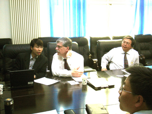 2007年4月24日,美国通用汽车公司Simon C. Tung和Eric W. Schneider博士一行来我校机械与车辆工程学院开展学术交流与合作访问。机械与车辆工程学院副院长徐春广教授、姜澜教授、王晓力教授参加会议,院长助理、院办主任邹渊老师主持会议。