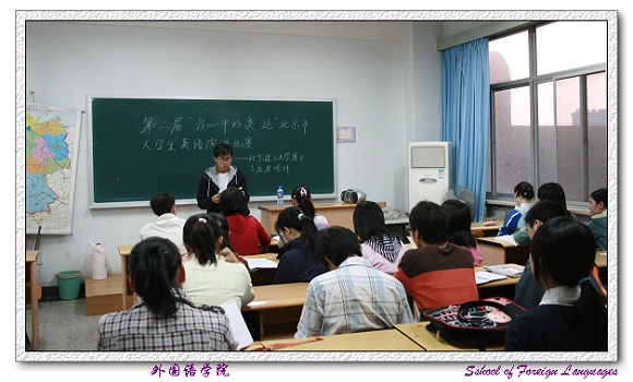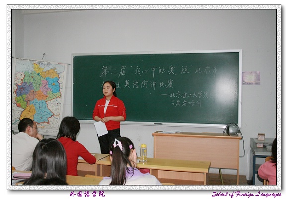 第二届“我心中的奥运”北京市大学生英语演讲比赛德赢AC米兰官网赛区的比赛由外国语学院承办,为了顺利完成各项组织工作,外国语学院招募了一批学生志愿者,并对学生志愿者进行了培训。