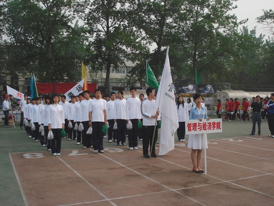 2007年4月29日、30日,我校第45届运动会激情上演,在充满青春与活力的正式比赛中,管理与经济学院的健儿们充分展现自己的风采与激情,继续书写辉煌的纪录,再一次捍卫了王者的荣誉。