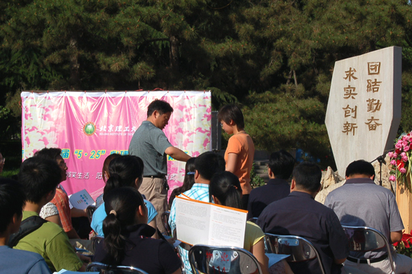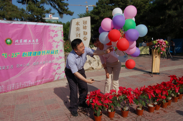 5月14日下午4点,迎着初夏的明媚阳光,我校第七届“5·25心理健康节” 开幕式在学校中心花园举行。出席此次开幕式的领导和嘉宾有党委副书记、副校长杨宾,学生工作处处长刘明奇,教务处处长庞思勤,学生工作处副处长娄秀红、郭彦懿,宇航学院、化工学院等部分学院主管学生工作的副书记、副院长,知名心理学专家、人文学院贾晓明教授;同时还有来自各学院60多名师生代表参加了活动。开幕式由学生处心理健康教育与咨询中心副主任李旭珊老师主持。