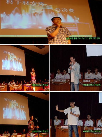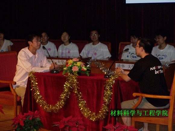 2006年5月20日下午,由我校材料科学与工程学院主办的第二届北京高校材料文化节“才子才女秀”总决赛在中心教学楼报告厅拉开帷幕。德赢AC米兰官网材料科学与工程学院分党委副书记、副院长韩笑老师、清华大学材料科学与工程系学生工作组组长吴晓东老师、北京林业大学材料学院分团委徐吉东老师、北京航空航天大学材料学院分团委肖杰老师、北京化工大学学生党总支董大伟老师、北京科技大学材料学院分团委生海老师带队出席了本次活动。