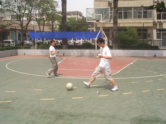 在倒挂金钩游戏场地上,端水杯运球,再来点盘带,校队会不会邀我加入?