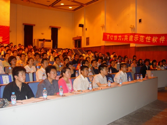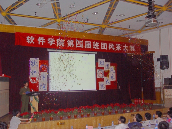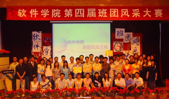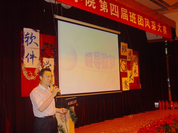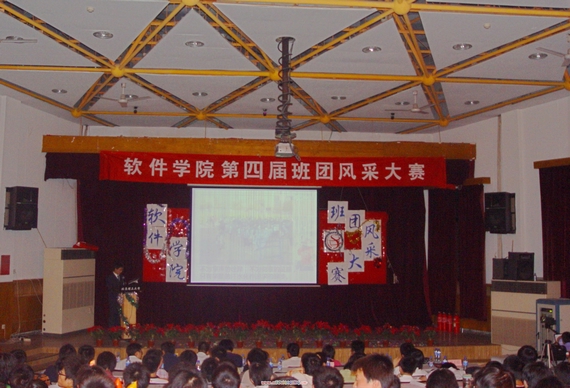 5月19日晚7:00,软件学院第四届班团风采大赛在七号楼报告厅隆重举行。软件学院副书记副院长陈旵明老师、软件工程系主任赵小林老师、对外合作办公室刘昕戈老师以及2006级班主任亲临比赛现场。计算机中心的陈寿福老师、李凌老师以及分团委的老师们担任了比赛的评委。