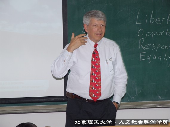 2007年5月22日下午,来自美国的Mr James E.Ringenberg 为人文学院法律系近百名学生举行了一场关于美国法和美国历史的讲座。