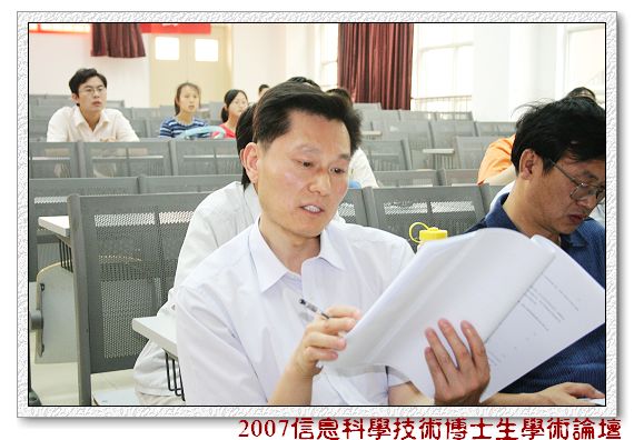2007年5月20日上午2007信息科学技术博士生学术论坛信息与通信工程分论坛在研究生楼302教室举行。参加分论坛的点评专家有安建平教授,陶然教授,龙腾教授,吴嗣亮教授和刘志文教授。