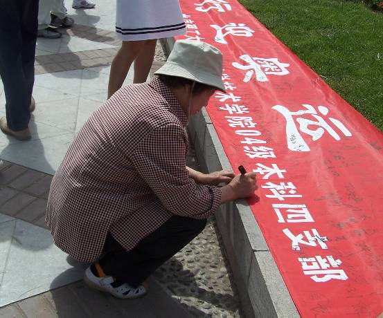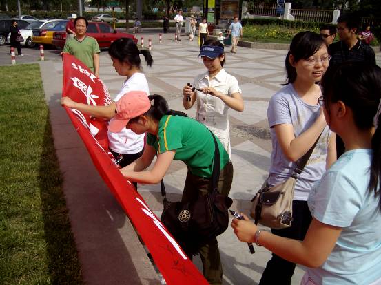 为了响应我院“党员零距离”系列活动的有关号召,以实际行动迎接2008年奥运会的到来,2007年5月27日我宇航科学技术学院04级本科四支部在玉渊潭公园门口及紫竹院公园开展了以“宣传奥运知识、弘扬奥运精神、传播奥运文化”为口号,以“我以我行迎奥运”为主题的大型签名活动。
