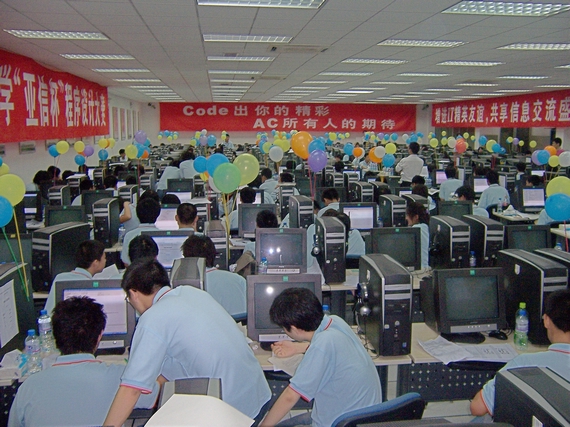 在6个小时的比赛过程中,参赛选手们都发挥了自己最好的水平。他们自备了水、面包等补充体力的食物,准备在6个小时中对自己的脑力和体力进行双重的挑战。比赛过程中,参赛队每做出一道题,都会给其队伍添加一个代表相应题目颜色的气球。借此给现场的选手提示出哪些题目较易攻克,更为比赛现场增添了十分轻松活跃的气氛。