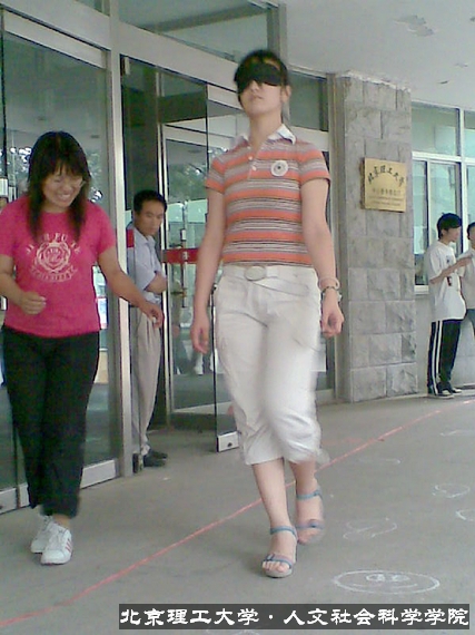 地雷阵中,每组两人,一人指挥,另一人蒙住眼睛,听着同伴的指挥通过地雷阵,过程中只要踩到任何东西就要重新开始。指挥者只能在线外,不能进入地雷阵中,也不能用手扶伙伴。这项训练结束后,各组的成员在活动中建立及加强对伙伴的信任感。