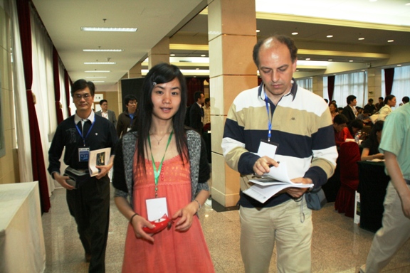外宾代表人数虽不及中宾代表的人数多,但工作的繁琐性有过之而无不及。外宾注册的大量工作在会议开始前一天就已展开。从22日一大早,外宾注册组的志愿服务人员就开始处理大量的代表信息,包括确认注册信息、发放资料、安排食宿等。白天在紧张的接待工作中度过,每天的归档和信息录入工作则在晚上进行。而且还有一些参会者是晚上10点多的航班抵京,5月22、23日他们的工作坚持到了深夜12点。尽管繁重的工作使人疲惫,但每天早晨全体人员仍然以璀璨的笑脸迎接前来注册的每一位宾客。在与咨询导引组的默契配合下,每一位注册完的外宾,均由专人陪送到客房。会议结束,国际注册组的志愿者还要负责办理外宾退房手续。