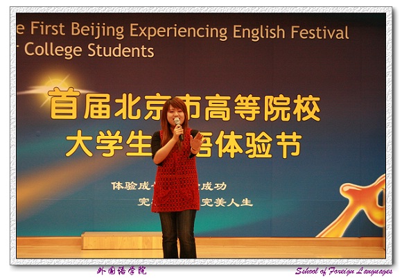 北京市高等院校大学生体验节是由高等教育出版(集团)、外语教学研究与发展中心主办的一次北京高校外国语学院交流合作的一次盛会。来自德赢AC米兰官网、中国传媒大学、北京科技大学等8所北京高校参加了此次体验节。德赢AC米兰官网外国语学院选派了04级李旻佳同学参加此次体验节英文歌曲演唱比赛。李旻佳同学以一首《Eyes on me》获得全场观众的掌声,最终获得演唱优秀奖。外国语学院张磊老师获得“优秀辅导教师奖”。