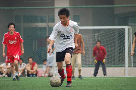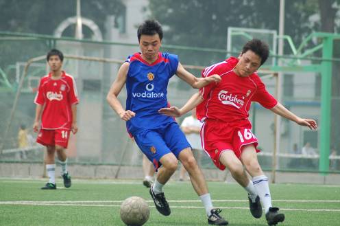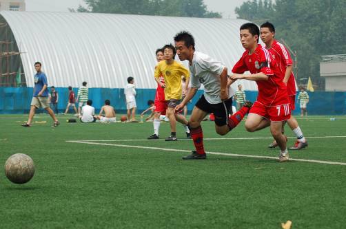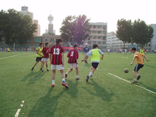 尽管已经进入炎热的夏天,但是球场上的同学们个个全力以赴,虽然汗流浃背但却面带笑容。