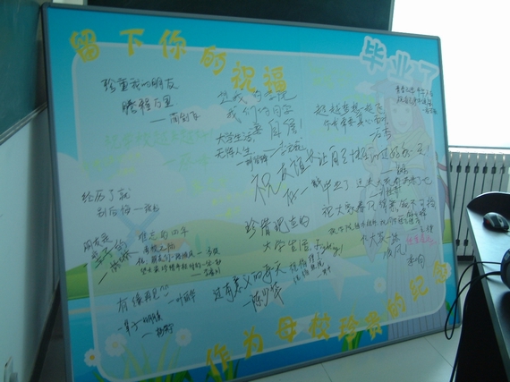 在软件学院的每一个德育答辩的现场,都有这样一块留言板,所有参加德育答辩的毕业生用彩笔记录下了对母校、对老师、对同学最美好的祝福。“祝愿母校越来越好”、“我一辈子也不会忘记你们——我的朋友”、“感恩的心”……
