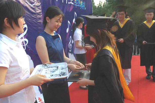 副书记副院长孟祥详细解释学院赠与毕业生的纪念牌的象征意义