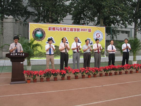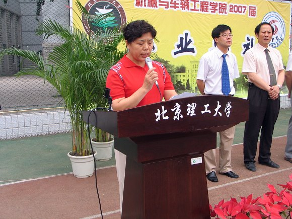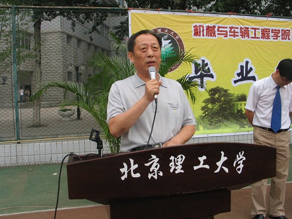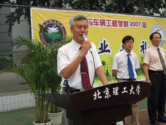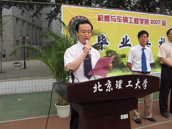 7月12日下午,机械与车辆工程学院在校东操场隆重举行2007年研究生毕业典礼。学院院长项昌乐、分党委常务副书记张英、副院长丁洪生、徐春广、左正兴、胡纪滨、左建华以及教师代表刘昭度教授、部分学生家长、全体2007届研究生毕业生出席仪式。