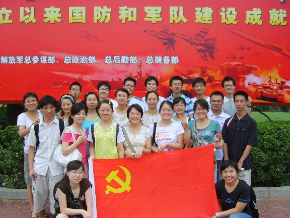 2007年7月下旬,生命科学与技术学院学生党支部陆续来到中国人民革命军事博物馆,参观为纪念中国人民解放军建军80周年在这里举办的《我们的队伍向太阳——新中国成立以来国防和军队建设成就展》。此次展览通过20件国产大型主战装备、1750件文物、970余幅图片、6座大型景观,带领参观者穿越历史时空,聆听人民军队与共和国同步发展壮大的脚步声。