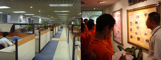在公司季青先生的带领下,我们参观了公司的研发中心、文化长廊、市场部、销售部、移动事业部和网通电信事业部等工作场所。