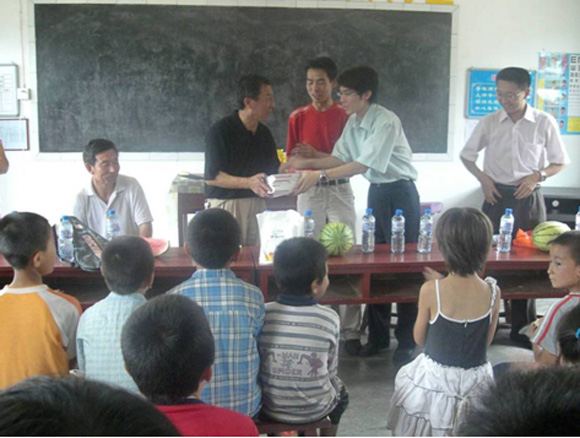 之后我们到一个教室坐下来和校长老师还有孩子们交谈,并送给了他们一些文具和体育用品。这次亲身经历让我感触颇深,第一次深切的感觉到了西北孩子们上学的不易,我们这次给孩子们带去了外面的世界,帮助他们树立了远大的理想,我们也立志今后有机会一定要到西部去支教。