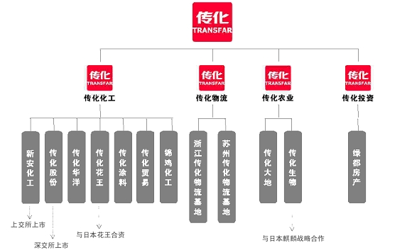 传化企业创建于1986年,最初以2000元借款,从生产液体洗涤剂开始,起步于化工、发展依托于化工。2000年后,进入物流和现代农业。由此形成了以“传化化工”、“传化物流”、“传化农业”为核心、“传化投资”为补充的“3+1”事业格局。