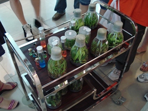 随后,实践团参观了集团目前生产的化工产品和农产品,对集团产品的种类和市场有了更直观的认识。特别是一株株生长在培养基里的农产品引起了大家浓厚的兴趣,队员们也纷纷就农产品的研发、培育和市场向讲解员提问。