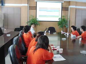 材料科学与工程学院赴浙江社会实践团经过昨天一下午对传化集团的参观走访后,对传化集团的集团构架、企业文化、发展规划等整体情况有了一个初步的认识。今天实践团将与传化集团旗下的传化股份有限公司的领导和人力资源部的技术人员进行面对面的座谈。传化股份有限公司位于国家级经济技术开发区——杭州市萧山经济技术开发区,原为杭州传化化学制品有限公司,创建于1988年,是国家火炬计划重点高新技术企业,十多年来一直致力于纺织印染助剂的研究、开发、生产和应用,现已成为国内纺织印染助剂研发、生产的龙头企业之一。