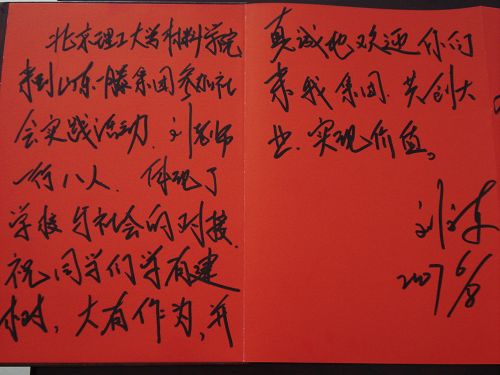 公司领导题词留念,表达了对本次实践活动的肯定以及对于同学们的祝愿。