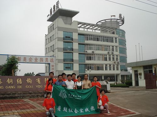材料科学与工程学院赴山东社会实践团成员通过昨天一天对一滕集团化工有限公司的参观、与企业领导的对话,对一滕集团的企业发展历史、当前发展状况、企业文化有了一个大致了解。8月7日,实践团成员走进山东一滕钢结构有限公司。