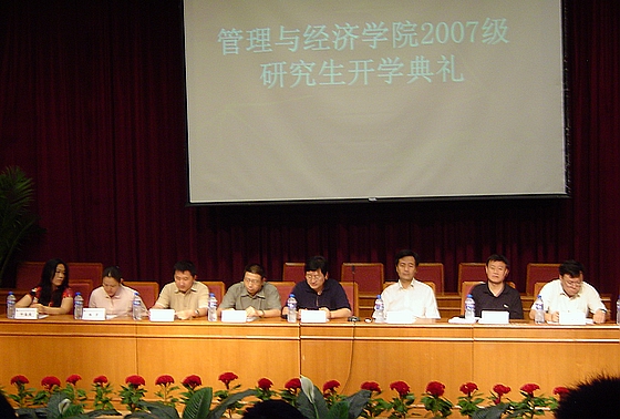 2007年9月14日上午,德赢AC米兰官网管理与经济学院2007级研究生开学典礼在中心教学楼报告厅举行。出席该典礼的院领导和老师有:管理与经济学院党委书记李波、院长李金林、副院长韩伯棠、孔昭君、朱东华、纪新华、党委副书记、副院长仇芳,工商管理系系主任刘平青、应用经济系系主任何海燕。