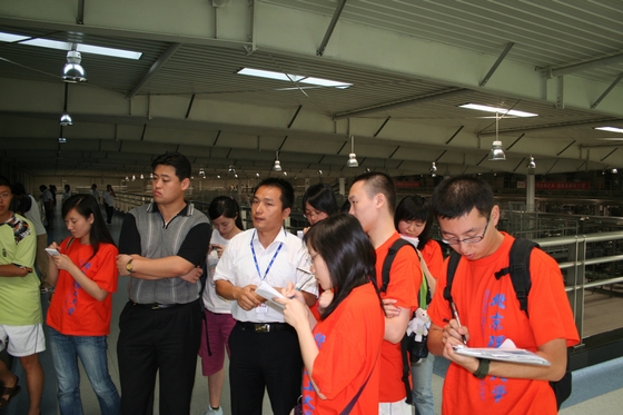 工作人员为实践团的成员详细介绍伊利的生产线,大家都积极的做着笔记。