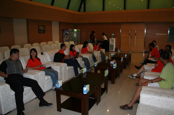 实践团的成员在认真的听伊利的工作人员介绍伊利战略、管理方面的相关信息。