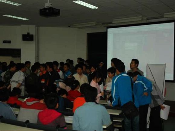 10月13日,宇航科学技术学院各社团在分团委方蕾老师和范鹰老师的带领下赶赴良乡新校区进行了招新活动。由于在学院开学典礼上各社团已经对零七级新生进行过社团介绍,因此各社团到场后就马上开始了招新活动。咨询报名现场十分热烈。
