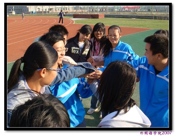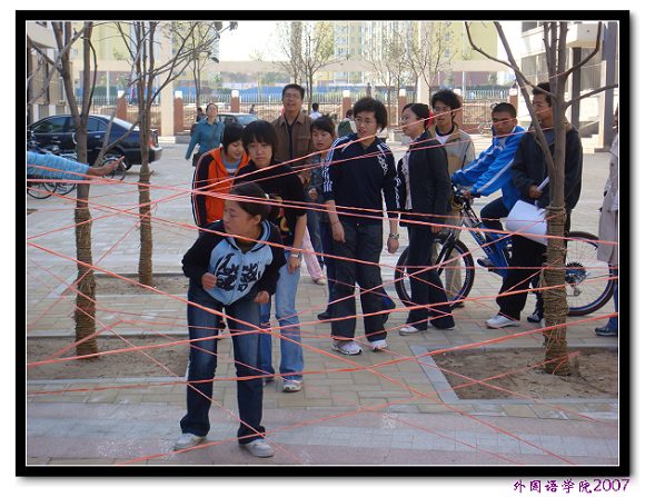 值得一提的是,负责组织这次素质拓展训练的均是2007级外国语学院的新生同学们,12个小姑娘用高度的责任心和细致的准备,为此次素质拓展活动的顺利进行作出了很大的贡献。
