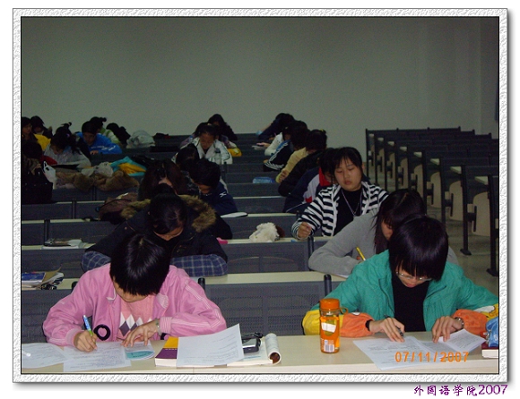 11月8日晚,外国语学院2007级英语专业在综合教学楼502进行了本科教学评估《宣传手册》的考核。英语专业所有同学均参加了此次考核。