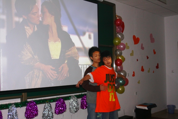 比赛分班级风采展示,班级合唱与自选节目表演三个部分。在班级风采展示环节,各个班都精心制作了班级ppt和DV视频,给在场同学做了汇报和展示。一班的合唱,二班的相声,三班的DV展示与行为艺术表演,四班的情景剧,这些精彩的节目都给评委与观众留下了深刻的印象。在中场休息环节,“痛并快乐着”这个游戏也让观众们好好的轻松了一把。