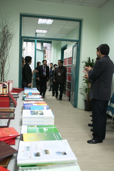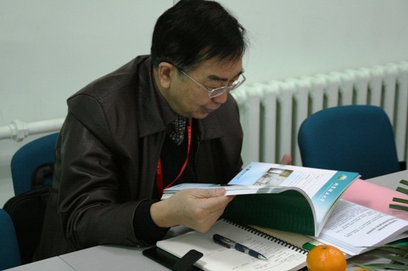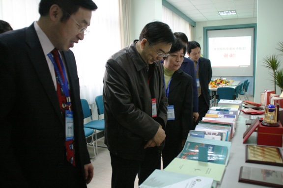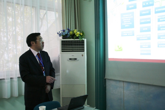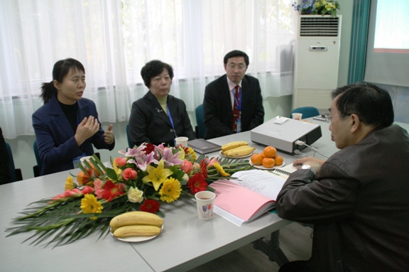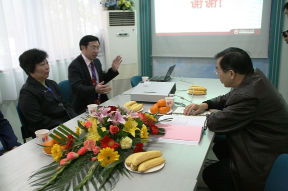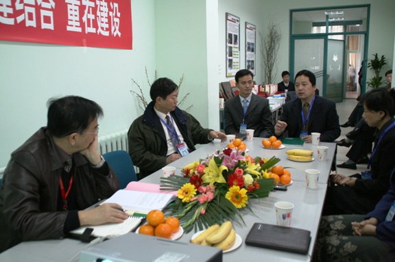 在参观完这两个小型展览后,傅丰林教授来到我院会议室,生命学院邓玉林院长代表学院向评估作了迎接教学评估的主题工作汇报,邓院长在汇报中全面展示了学院几年来各方面建设的成果,以及在师资队伍、课程改革、学生培养和科研工作等各个方面的特色。傅丰林教授有针对性的向学院提出了一些需要了解的问题,邓玉林院长、主管教学的罗爱芹副院长和主管科研与实验室工作的庞思平副院长认真回答了专家所提出的问题。