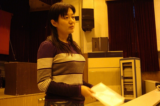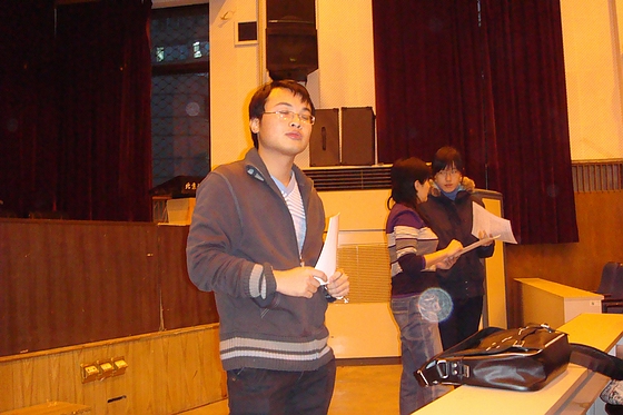 袁晓霖同学在向支部作有关学习十七大精神的思想汇报