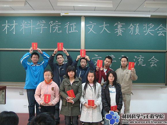2007年11月25日,材料学院学生会在良乡校区胜利召开材料学院征文大赛颁奖典礼暨文学交流会,历时一个月的征文比赛及评审工作落下了帷幕。本次征文大赛主题是“畅想08奥运,感悟大学生活”,其中共有三十余篇文章参赛,文章题材多样,包括散文、小说、诗歌、对联等,内容从个人情感到人文人性,从大学生生活到“绿色奥运、科技奥运、人文奥运”。最终04210701班李晓沛的文章《架上的黑葡萄》以其优美的语言、真挚的情感以及独特的文学形式夺得了本次征文比赛的桂冠。学习部部长谢松明的《依依不舍》夺得了本次征文比赛的特别奖,文章表达了他在担任“好运北京”志愿者时激动、兴奋、酸楚与不舍的情感。在此次颁奖典礼上,获奖同学们将文章与现场的同学一起分享,特别奖的文章《依依不舍》,燃起了大一新生对于奥运的热情,讲述了志愿者如何将他们的微笑变成了北京最好的名片。
