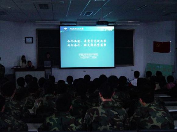 接下来由飞行器动力工程专业第一名张雁同学和同学们一道分享了学习的心得和经验,武器系统与发射工程专业第一名王新光同学讲解了专业前景、保研考研就业等问题。他们都鼓励学弟学妹们认真学习,规划好大学四年的学习生活,在大学里取得精彩的人生。同学们都兴致盎然地聆听,受益匪浅。